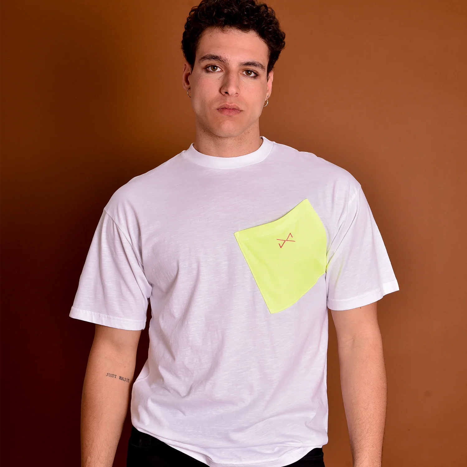"Lleva la diversidad de colores contigo con nuestras camisetas oversize. Desde tonos suaves hasta vibrantes, cada prenda es una expresión única de estilo, con un generoso bolsillo frontal y nuestro anagrama bordado que añade un toque de distinción a tu look. ¡Descubre tu combinación perfecta!"