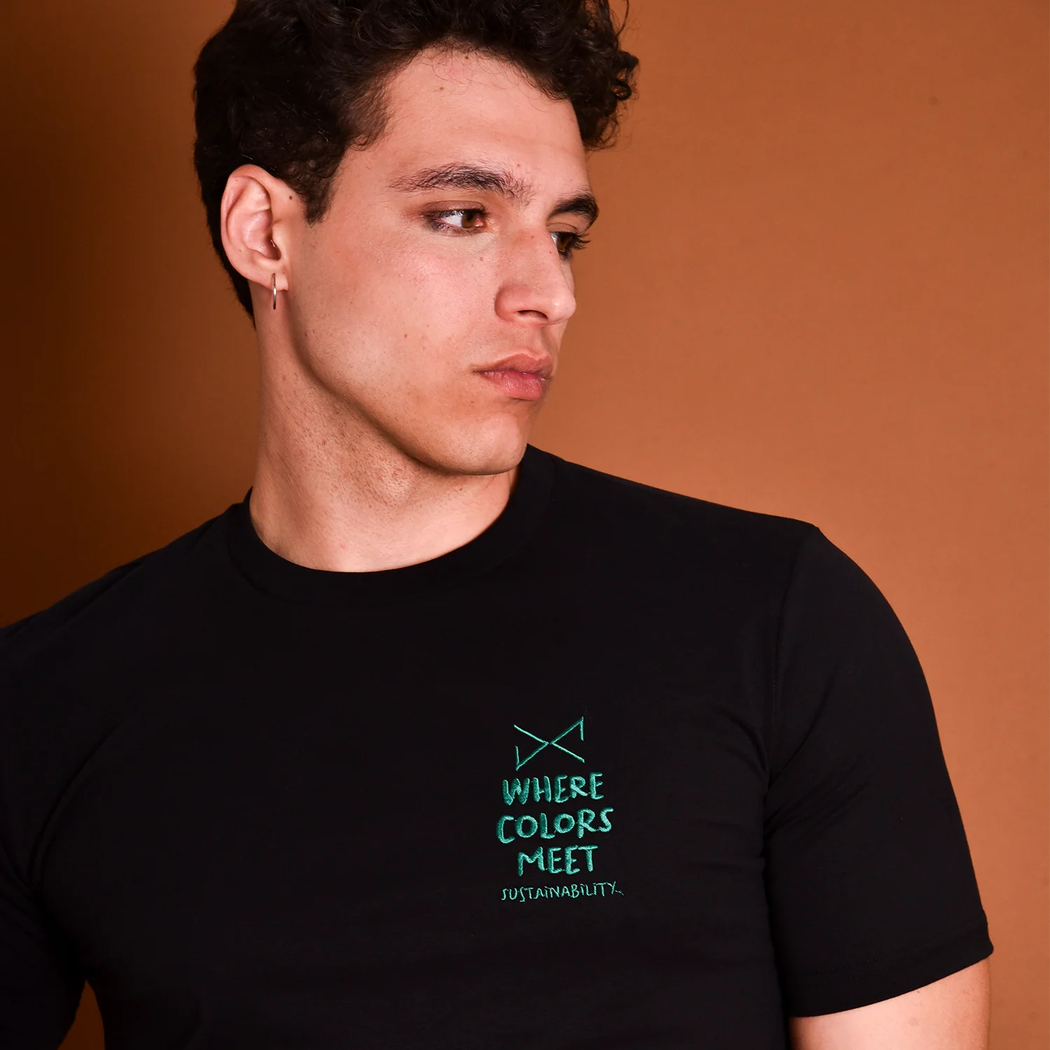 CAMISETA NEGRA BORDADO VERDE